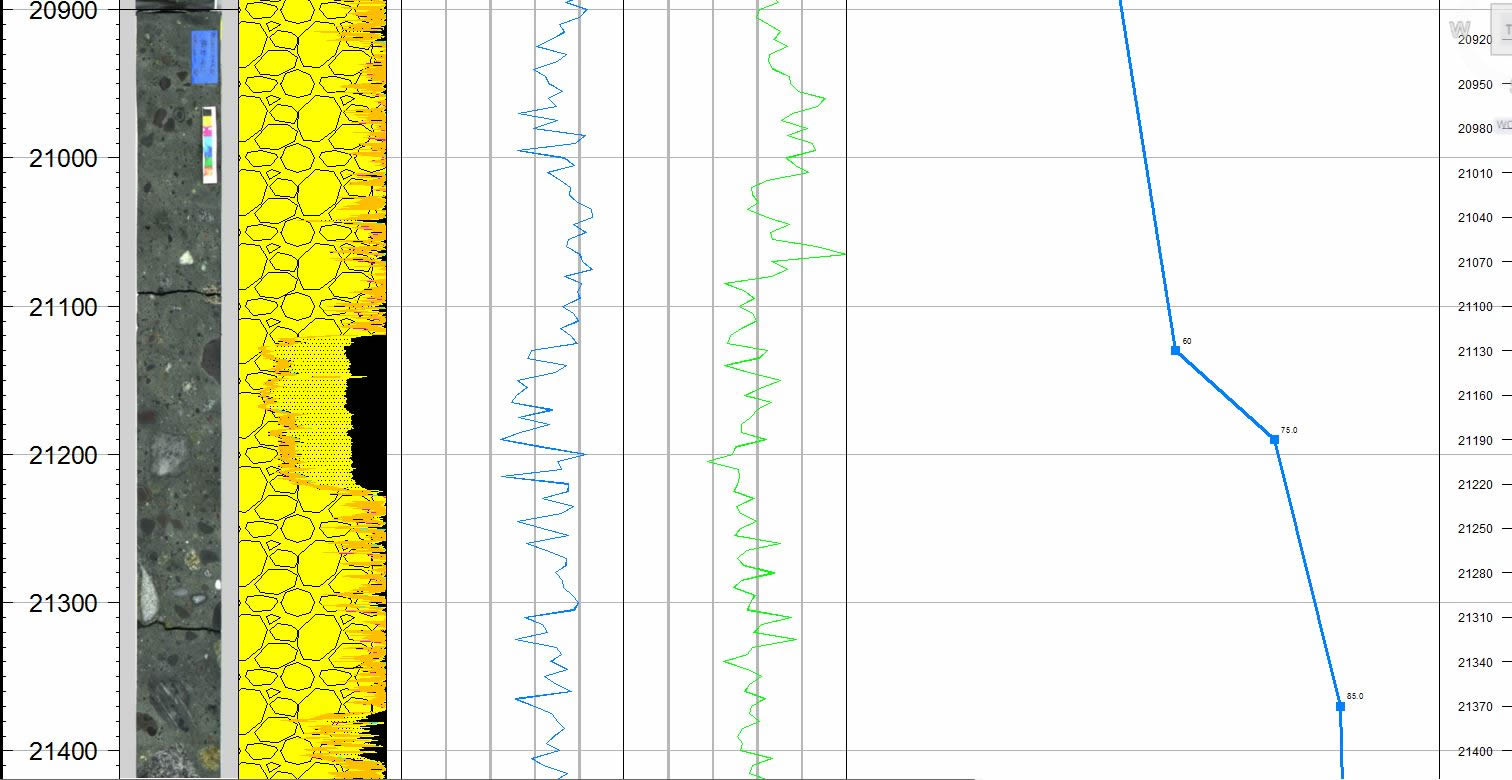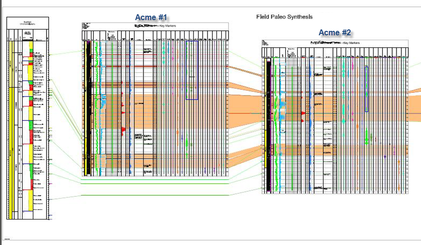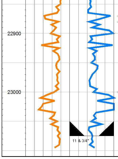 ![]() | Logs and Casing Points This is an example of two e-logs and a casing point. User defined colors, line thickness, scale, etc.